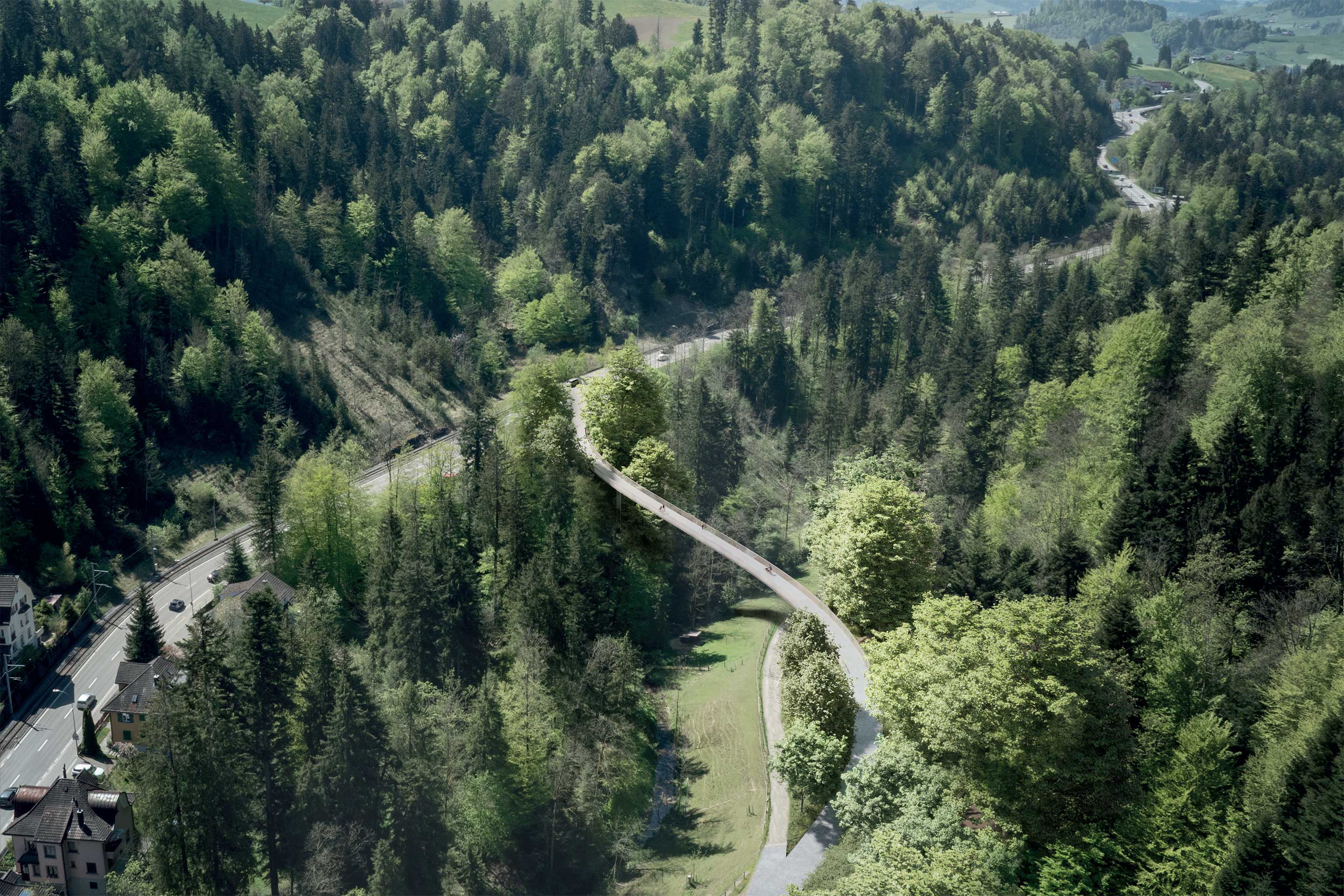 Für die neue Velobrücke über den Wattbach empfiehlt das Beurteilungsgremium das Projekt «linea silens» der Büros Bänziger Partner, Michael Meier und Marius Hug Architekten und Lorenz Eugster Landschaftsarchitektur Städtebau zur Weiterbearbeitung und Ausführung.