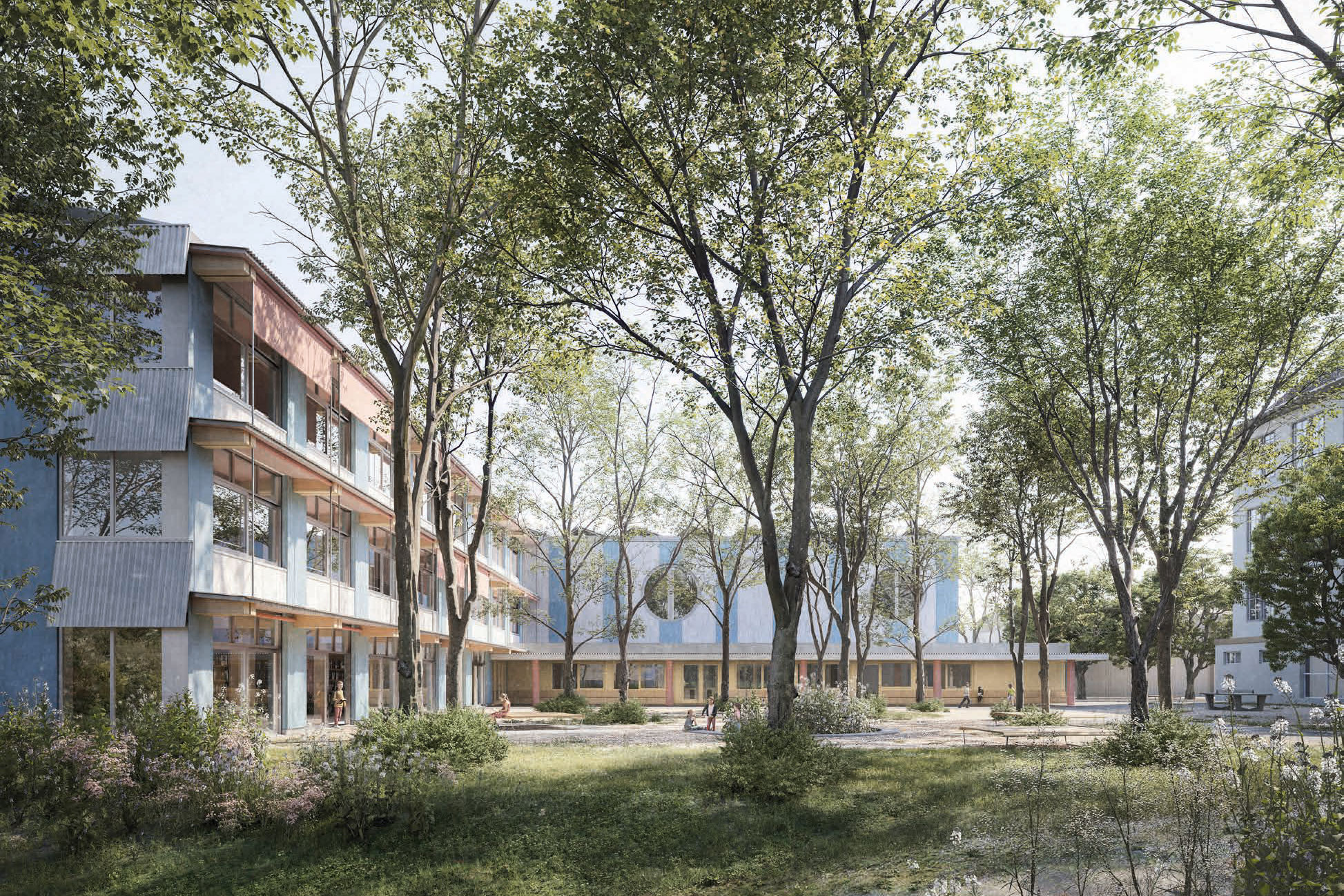 Das Team um Schmid Schärer Architekten, Skala Landschaft Stadt Raum und SEFORB gewinnt den Studienauftrag für das neue Mehrzweckgebäude beim Schulstandort Dorf in Frick. Beim Siegerprojekt fassen zwei rechtwinklig zueinander angeordnete Baukörper einen neuen Hofraum. Dieser dient als Adresse für die Mehrzweckhalle und schafft durch seine naturnahe Gestaltung ein attraktives Aussenraumangebot für die Schule.