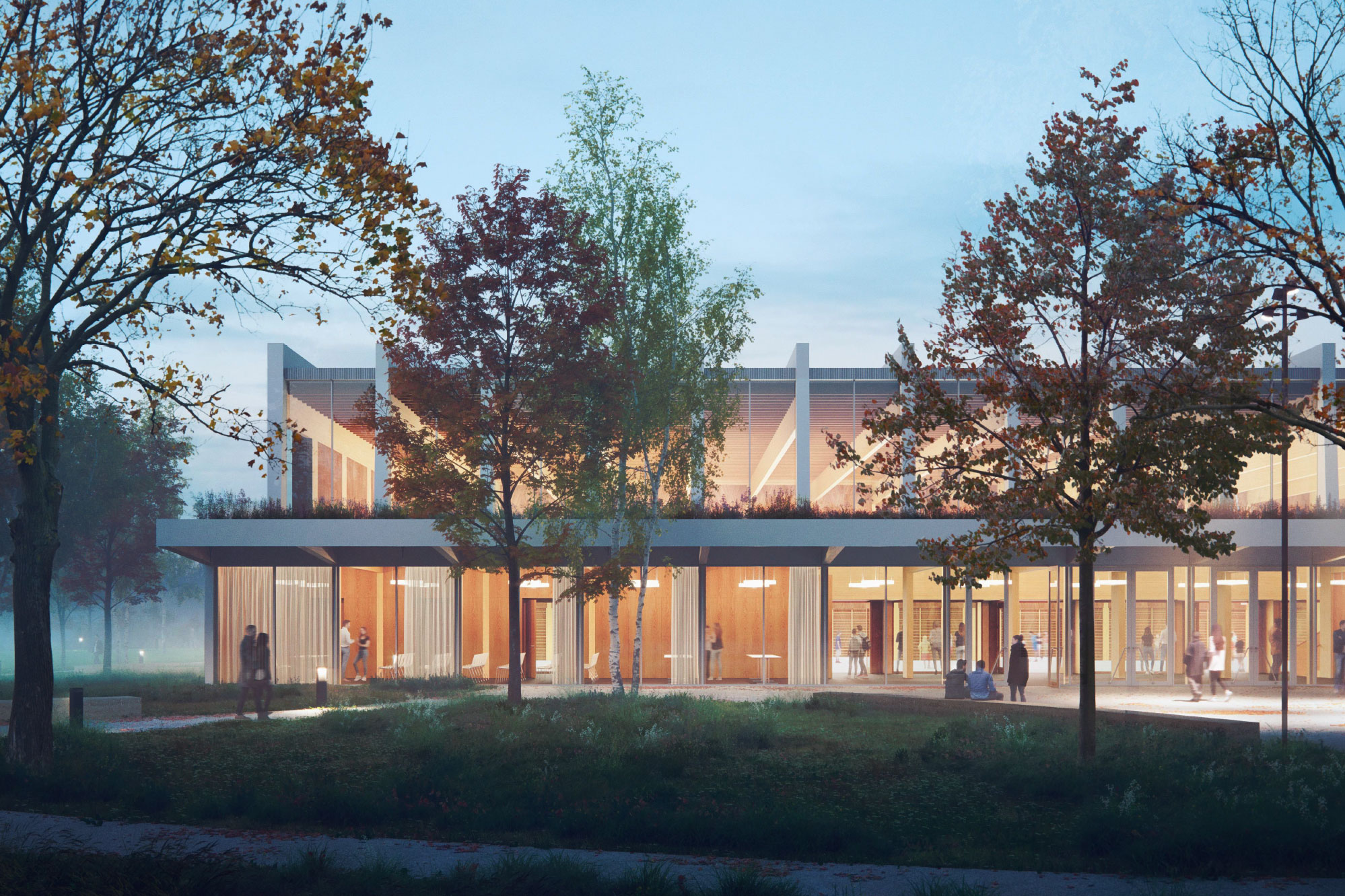 Geplant ist «eine Dreifachturnhalle in Holzbaustruktur, die Versammlungen mit bis zu 1000 Personen sowie grösseren Sport- und Festveranstaltungen Platz bietet. Der Grundriss besticht durch die ebenerdige Anordnung der Hallen mit den wichtigsten Nutzungen auf einem Niveau... Das Konzept mit begrüntem Vordach und Photovoltaikanlage, grossflächigen Fenstern und einer mit Metall verkleideten, gut gedämmten Fassade steht für eine langlebige und solide Konstruktion. Über Treppen gelangt man zu den Garderoben im Unter- sowie auf die Zuschauergalerie im Obergeschoss.» (Text: Medienmitteilung und Redaktion espazium.ch)