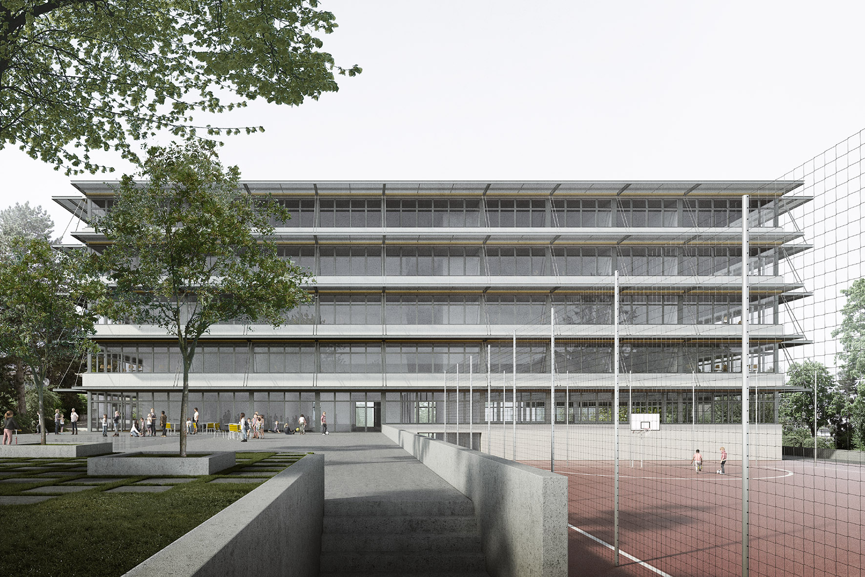Die Schulanlage Borrweg kommt an ihre Kapazitätsgrenzen und soll durch einen Neubau ersetzt werden. Den Projektwettbewerb im offenen Verfahren hat das Architekturteam von WALDRAP und atelier tp tijssen preller landschaftsarchitekten gewonnen.