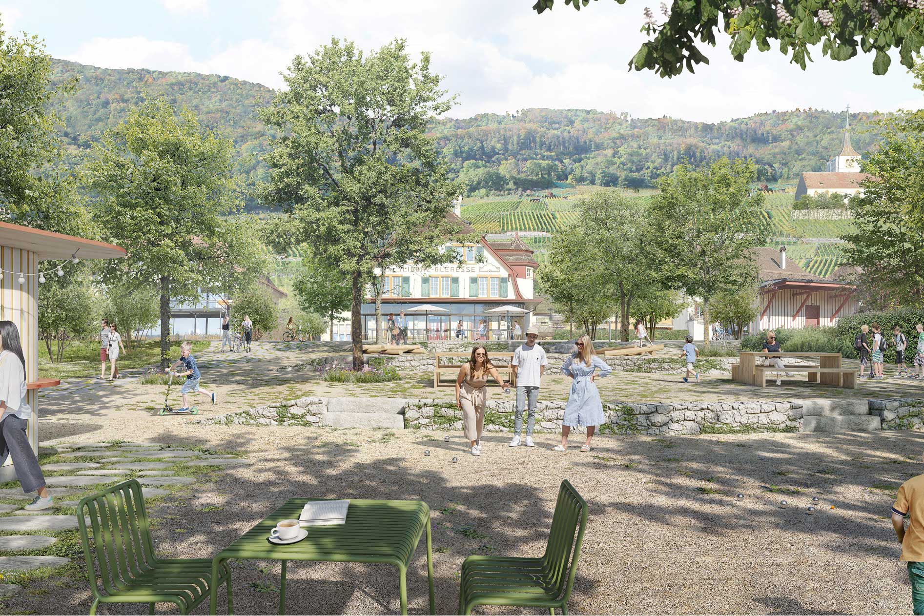 Der Gestaltungsvorschlag «Palimpseste» ist ortsspezifisch, adaptierbar und gewährleistet die erforderliche Flexibilität bezüglich Nutzung und Etappierung. Das Projekt fusst auf einer sorgfältigen Analyse der historischen Orts- und Freiraumstrukturen. Der Bestand bleibt weitgehend erhalten und wird durch punktuelle und sorgfältige Eingriffe angemessen weiterentwickelt und aufgewertet. Weiter weist das Siegerprojekt die gleiche Gestaltungssprache in Ligerz und in Schafis auf. Die Terrassierung im Teilperimeter Ligerz ermöglicht einen langsamen Abstieg zum See und bietet viele Gestaltungsmöglichkeiten. Die lokale Materialisierung überzeugt. Es werden zahlreiche ökologische Elemente vorgeschlagen. (Text: Medienmitteilung und Redaktion espazium.ch)