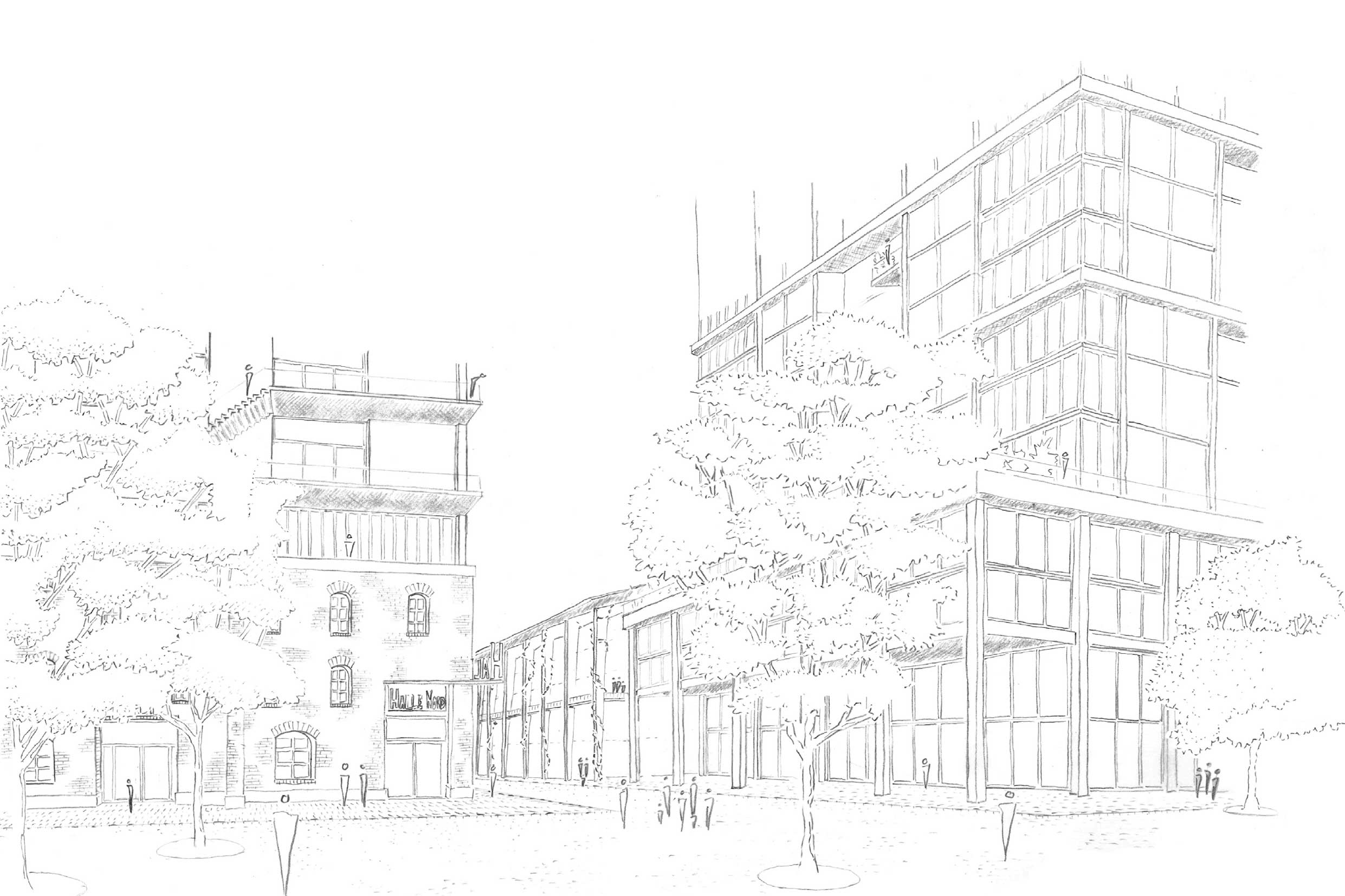 Im ersten Schritt hat Bricks gemeinsam mit der Gemeinde Allschwil und dem Kanton Basel-Landschaft fünf Architekturbüros beauftragt, Studien zur Entwicklung des Areals zu erstellen. Der Vorschlag von pool Architekten, Westpol Landschaftsarchitektur, Zirkular und Deuring + Oehninger Ingenieure überzeugte dabei in vielfältiger Hinsicht.